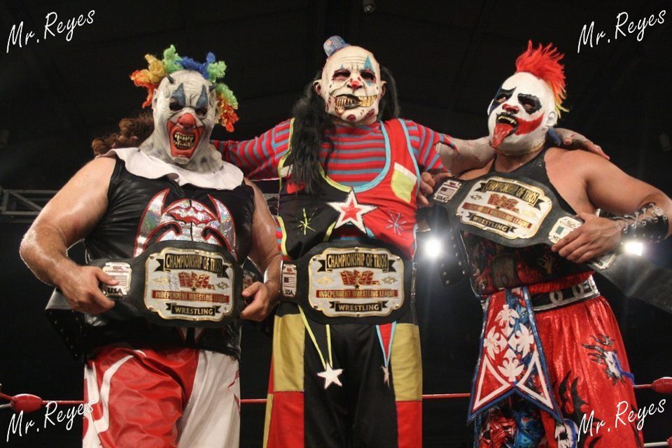 7) Monster Clown, Murder Clown, Psycho Clown derrotaron a Ángel o Demonio, León Rojo, Ovett para hacerse con el título de trios de IWL