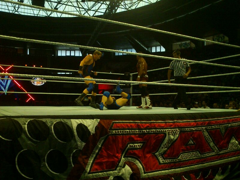 - Cena hace la cuenta sobre Tensai, despues de que este recibiera por error el KO punch de Show, tras el combate Laurinaitis intenta atacar con una muleta a Cena, pero este lo esquiva y le aplica el AA.