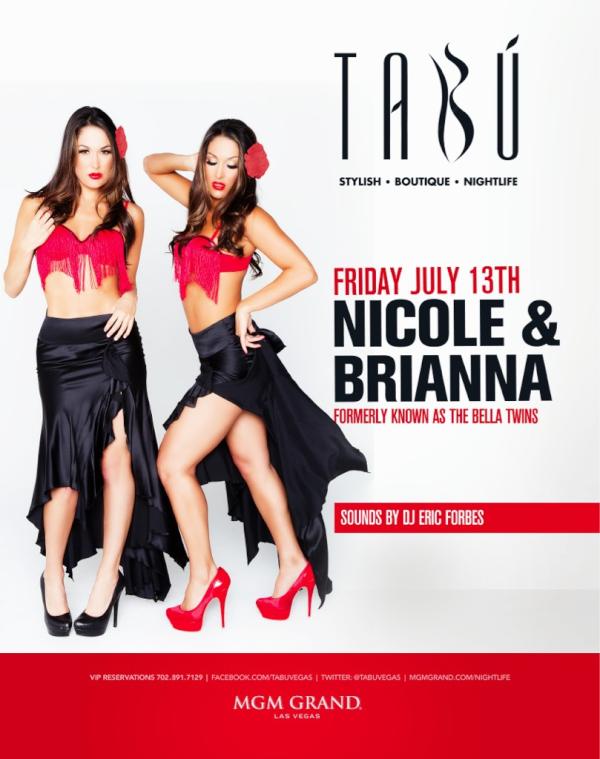 - Las ex-luchadoras de WWE, The Bellas Twins estarán apareciendo el próximo viernes 13 en la discoteca del hotel MGM de Las Vegas, Tabú