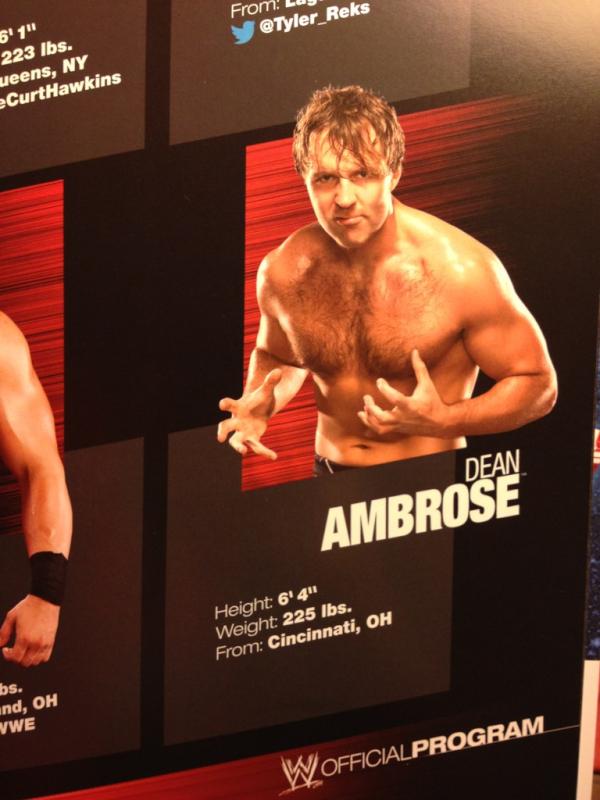 - A pesar de no estar apareciendo en ningun programa televisado, el programa de souvenir que se puede comprar en los eventos de WWE si que incluye a Dean Ambrose en el roster
