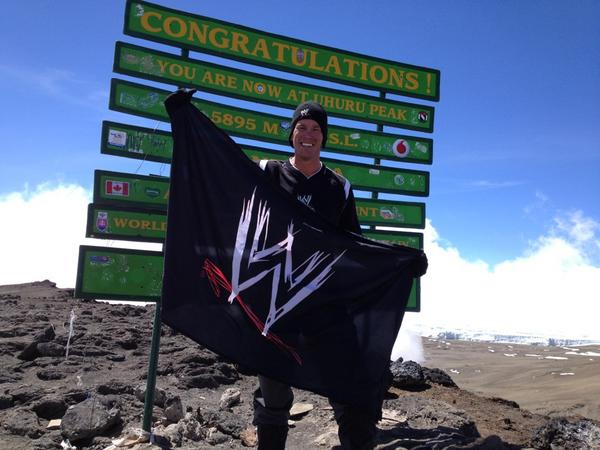 - JBL llegó ayer a la cima del Kilimanjaro en Africa, consiguió la ascensión en tan solo 7 días y para dejar muestras de su cima dejo un bandera de WWE en la cumbre. Aqui teneis la foto