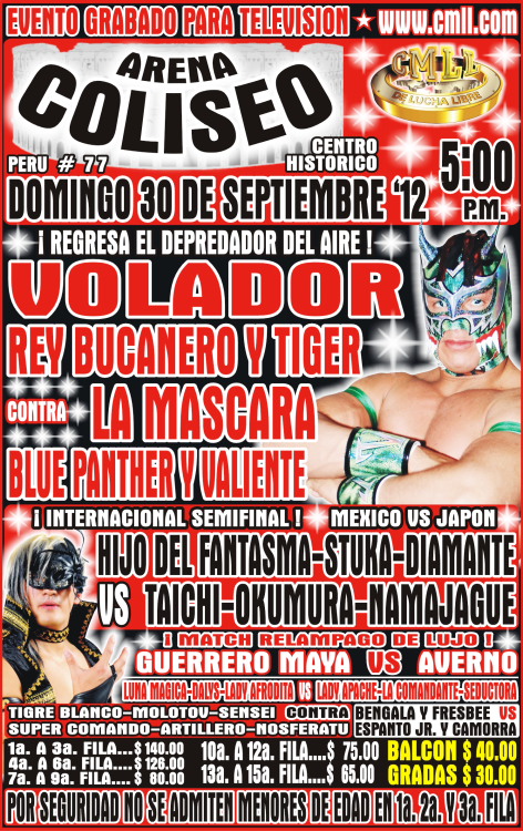 - Rey Bucanero, Tiger, Volador Jr. derrotaron a Blue Panther, La Máscara, Valiente