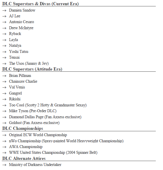 Aquí os dejamos la lista del contenido descargable (DLC) del videojuego WWE13: