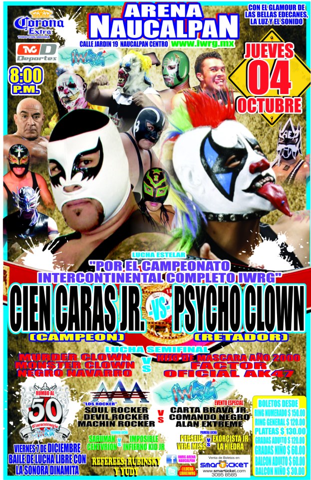 5) Cien Caras Jr. ganó a Psycho Clown para retener el título de campeón de peso completo de IWRG