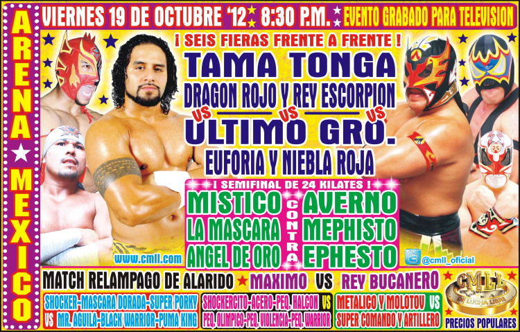 - Lucha Estelar: Ultimo Guerrero, Niebla Roja & Euforia vencieron a Tama Tonga, Rey Escorpion & Dragón Rojo Jr. por descalificación.