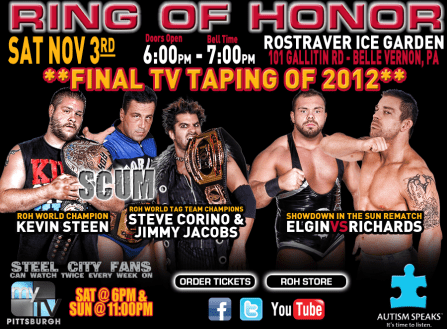 Estos son los resultados de las grabaciones de ROH celebrados ayer 3 de noviembre en Belle Vernon.