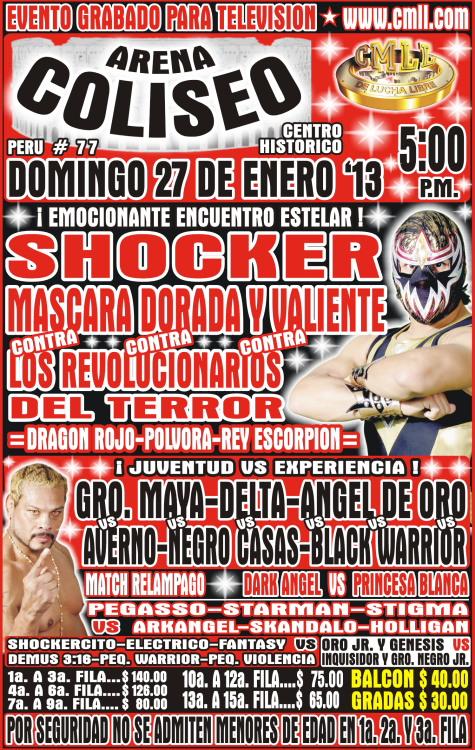 - Lucha Estelar: Valiente, Shocker & Máscara Dorada derrotaron a Polvora, Dragon Rojo & Rey escorpion.