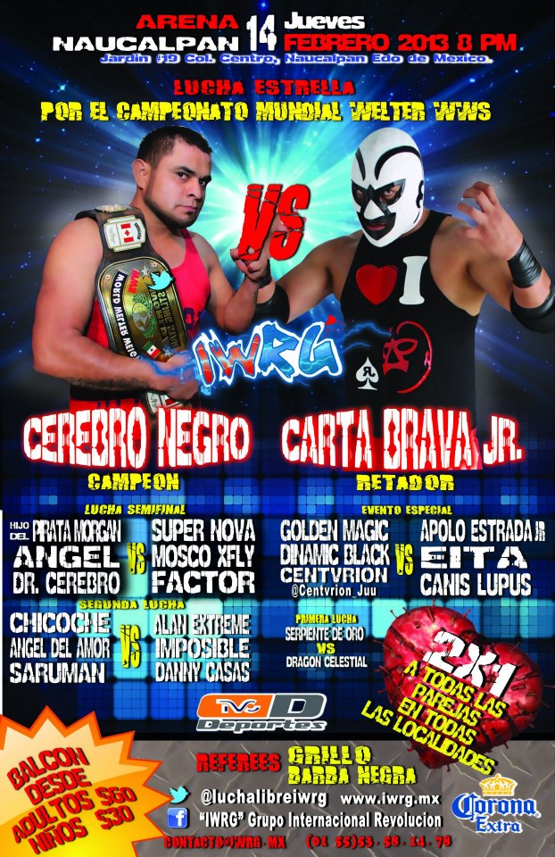 - Lucha por el campeonato mundial Welter: Carta Brava Jr. gano a Cerebro Negro para proclamarse nuevo campeon