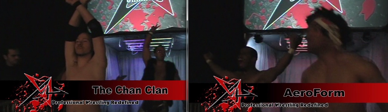 En los primeros momentos Aeroform domina totalmente a sus rivales, a base de patadas, vuelos y movimientos combinados (el nombre no lo tienen de adorno…), hasta que Eryn interviene tomandole el pie a uno de los chicos de Aeroform y asi darles el dominio a los heels, estos realizan movimientos interesantes como un Bulldog cayendo sobre las rodillas del compañero para aplicar más daño, pero Flip Kendrick trata de liberarse del castigo de Mcentyre a base de patadas para dar el hot tag a su compañero, aqui la ventaja la retoma nuevamente Aeroform a base de relevos rápidos y logran la victoria cuando le aplican a Knight Wagner un Moonsault desde la tercera cuenta con pin. El video que estoy viendo es sin relatos, por lo que es un poco dificil distinguir ciertas cosas, por ejemplo distinguir a los integrantes de Aeroform ya que son casi identicos, en relación al match, me gusto más que el anterior (no era dificil tampoco), pero muy corto quizás para un tag match, Aeroform tiene movimientos interesantes, pero se vieron muy forzados en contra de sus rivales, y aquí queda la impresión de que no huvo mucha química, incluso se vieron unos movimientos llegando al limite que separa el botch de algo bien hecho. La asistencia de Eryn paso inadvertida. En resumen, quizás con más minutos hubiese quedado mejor.