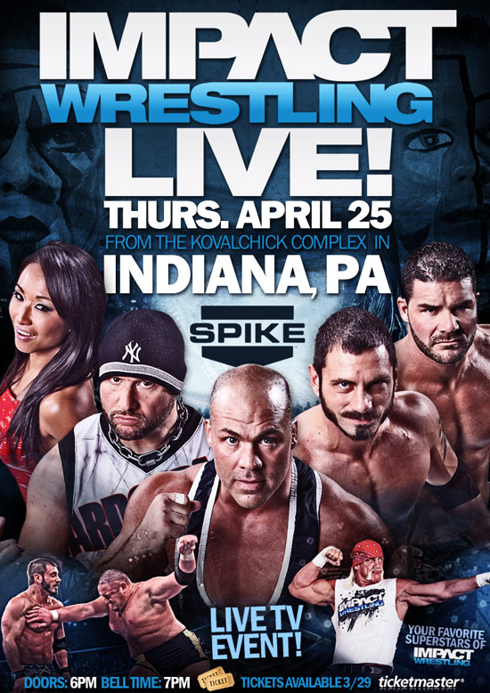 - El proximo 25 de abril, el Impact Live se llevara a cabo desde Indiana asi lo anucnio la empresa de Dixie Carter el pasado jueves en Impact, aqui os dejemos el poster del evento