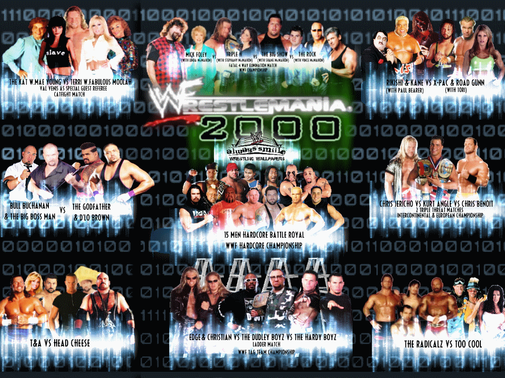 Wrestlemania 2000, la que fue la 16ª edicion de Wrestlemania, vino marcada por ser la primera Wrestlemania con un main event de cuatro luhcadores y ademas cada uno de ellos iba acompañado por un miembro de la familia McMahon. Ademas de esta Wrestlemania siempre recordaremos el magnifico combate triple amenaza de parejas entre Edge & Christian vs Hardy Boyz vs Dudley Boyz. Todo esto sucedio el 2 de abril del 2000 en el Arrowhead Pond de Anaheim, California ante 19.776 personas.