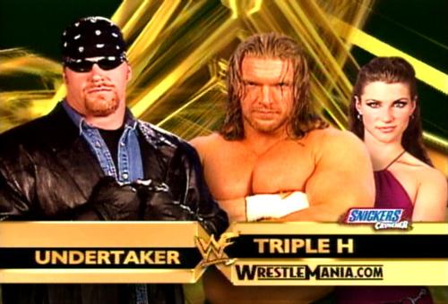 Primer combate que ambos tenían en una lucha individual en un PPV, y la verdad es que la lucha estuvo a la altura de lo esperado, ya que ambos dieron un a buena lucha no al nivel de 5 estrellas pero si a un nivel decente para una Wrestlemania. Empezaron golpeándose en los aledaños del ring con algunas visitas en forma de golpe en las cabeza de Undertaker a la mesa de comentaristas hispanos. Tras un rato en el ring donde Undertaker atacó al arbitro, el mismo Enterrados saco a Triple H del cuadrilátero y se empezaron a golpear por todo el estadio hasta llega a la zona de medios técnicos donde Undertaker le propinó un chokeslam desde la torre de una camara al suelo. Los paramédicos entraron a ver el estado de Triple H y este les atacó. Volvieron al ring y Undertaker fue a aplicar el tombstone pero Triple H le dio la vuelta y aplicó el suyo propio, pero sin exito ya que el referee aun estaba KO. En el ring Triple H golpeó a Undertaker con el sledge hammer pero la cuenta llegó a dos, tras esto golpes en la esquina de Triple H, pero Undertaker reacciona y con la last ride powerbomb consigue hacer la cuenta de 3 sobre Triple H y llevarse la victoria. Nota del Wrestling Observer ***1/2