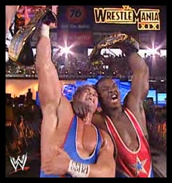 Primera Wrestlemania de Lesnar, y entrada por todo lo alto, luchando por el título de WWE, su rival el campeón entonces Kurt Angle, que llegaba a este combate con una estipulación en contra y es que si era descalificado o contado perdería el cinturón. El combate empezó con Brock y Kurt dándose con todo e incluso contrarrestando Angle un shoulder block de Lesnar en un german suplex. Lesnar intentó aplicar el F-5 pero Kurt Angle le dio la vuelta y aplicó su ankle lock pero Lesnar consiguió salirse. Tras salirse Angle quiso hacerle un angle slam pero Lesnar lo transformó en un genial F-5, pero en cambio de hacerle la cuenta Brock Lesnar subió a la tercera cuerda para lanzarse con un shooting star press que botcheo de manera estrepitosa y a punto estuvo de costarle una lesión sería a Brock. Angle cubrió el error haciendo la cuenta pero esta solo llegó a 2. Angle levantó a Lesnar solo para llevarse un F-5 de Brock y la cuenta de tres. Asi que victoria y nuevo campeón de WWE, Brock Lesnar. Nota del Wrestling Observer ****1/4