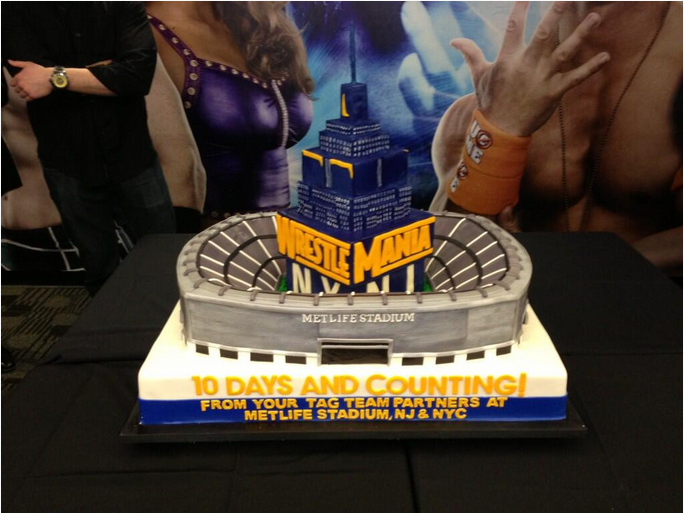 La vicepresidenta ejecutiva de la WWE Stephanie McMahon ha publicado en su cuenta de twitter esta imagen de la tarta que el programa de televisión Cake Boss elaboró con motivo de Wrestlemania 29.