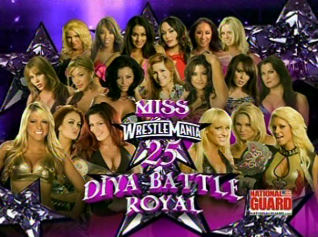 • Miss Wrestlemania 25 Diva Battle Royal:  Melina, Mickie James, Kelly Kelly, Beth Phoenix, Rosa Mendes, Jillian Hall, Layla, Maryse, Michelle McCool, Maria, Gail Kim, Eve Torres,Brie Bella, Nikki Bella, Natalya, Alicia Fox, Katie Lea Burchill, Tiffany, Molly Holly, Sunny, Jackie Gayda, Joy Giovanni, Victoria y Torrie Wilson y Santina Marella.