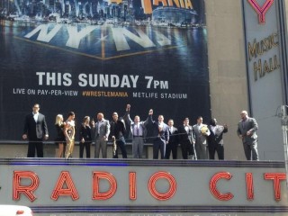 Después de la conferencia de prensa de ayer en el Radio City Music Hall, parte del equipo de la WWE subió en la parte superior del escenario para una sesión de fotos. ahí podemos ver a Vince McMahon, The Rock, John Cena, Fandango, Rae Summer, The Great Khali, Triple H, Stephanie McMahon, Big Show, Alberto Del Río, Ricardo Rodríguez, Mark Henry y Michael Cole.