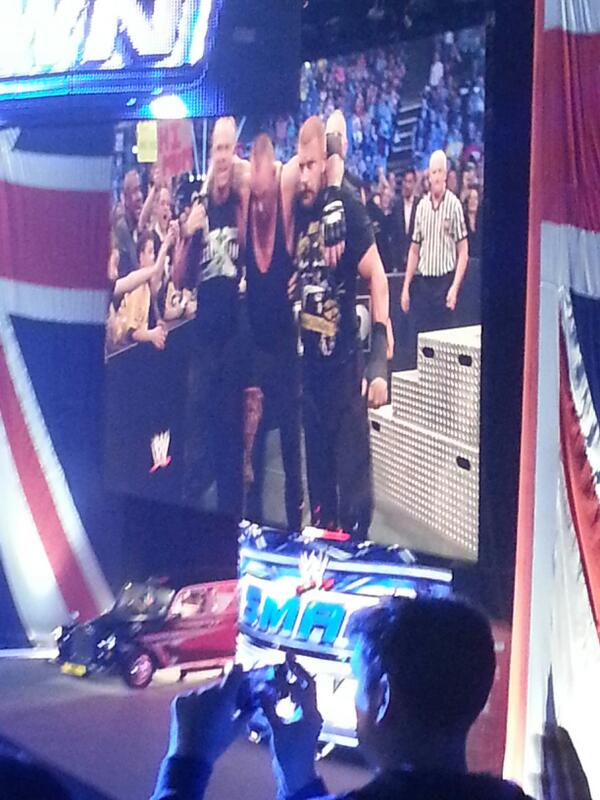The Undertaker llega a la arena y ésta explota. El Escudo hace su ya conocida entrada por entre el público. Al parecer la lucha será televisadaa continuación una foto del encuentro :