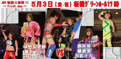 5. Arisa Nakajima & Kana & Nikki Storm ganaron a Tsubasa Kuragaki & Manami Katsu & Rabbit Miu (17:03) cuando Kana golpeó con Right High Kick sobre Katsu.