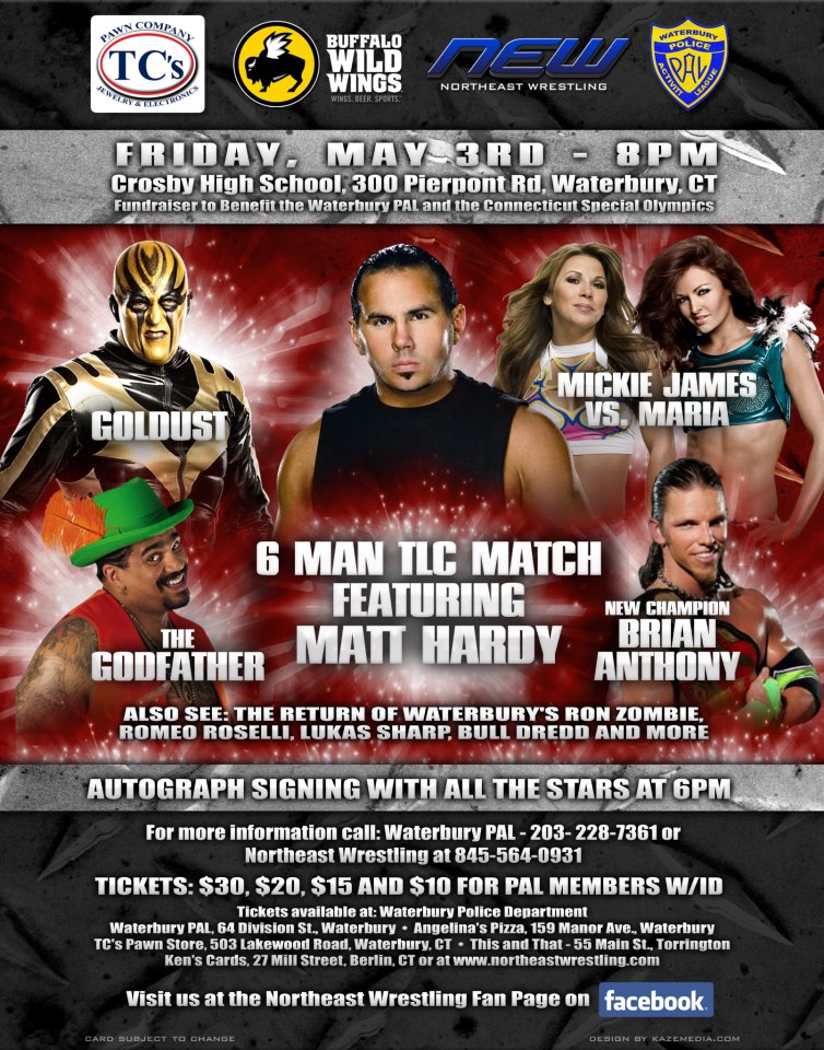 - NEW Heavyweight Title Five Way Tables, Ladders & Chairs Match: Brian Anthony (c) retuvo ante Adam Page, Caleb Konley, Lukas Sharp & Matt Hardy