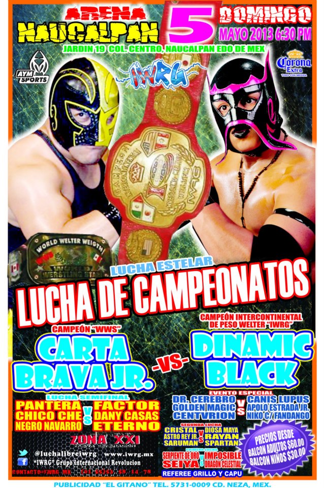 Dinamick Black triunfo sobre Carta Brava jr y se convierte en doble campeón de peso welter de la IWRG y de la WWS.