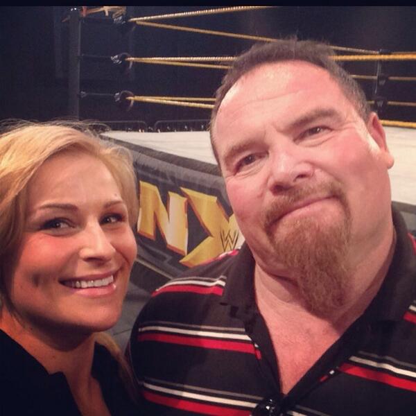 Natalya estaba en la división de desarrollo esta semana para el rodaje de Total Divas. Su padre, la WWE Leyenda Jim «The Anvil» Neidhart estaba trabajando con ella.