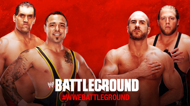 Hace apenas escasos minutos se ha anunciado por parte de WWE un nuevo combate que tendrá lugar esta noche en el PPV Battleground. Este combate por parejas enfrentará a dos luchadores internacionales, Santino Marella & The Great Khali contra la pareja The Real Americans (Antonio Cesaro & Jack Swagger).