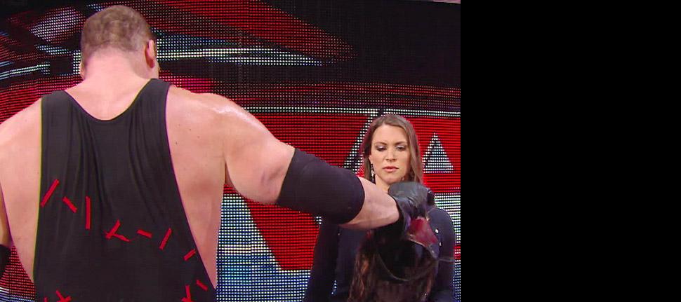 Durante RAW Kane se ha ofrecido ante Stephanie McMahon para estar a su servicio e incluso se sacó la máscara delante de ella (como se puede apreciar en la foto) ¿qué sigue para kane al lado de la corporación?