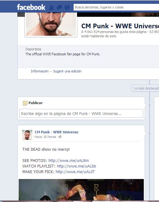 WWE está utilizando su página oficial Facebook en la cuenta de CM Punk para promover artículos relacionados con el Undertaker en WWE.com. Esto confirma a los fans (por si alguien no lo sabía) que sus estrellas no escriben en realidad en sus páginas de Facebook, y que lo hacen los empleados de la empresa.