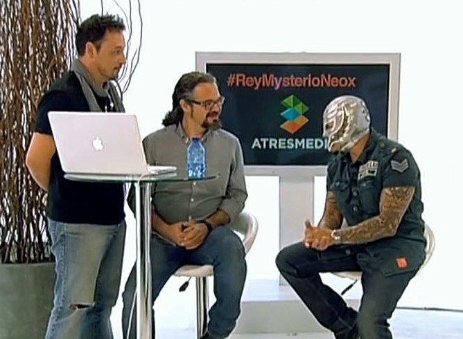 Por la tarde, Mysterio estuvo en los estudios de Antena 3 en Madrid (cadena que emite RAW y SD! en España) para realizar un videoencuentro en directo con aficionados de toda España a través de la web. Este encuentro fue presentado por Fernando Costilla y contó con la colaboración de http://www.kgb-wrestling.com (como podéis ver en la foto)