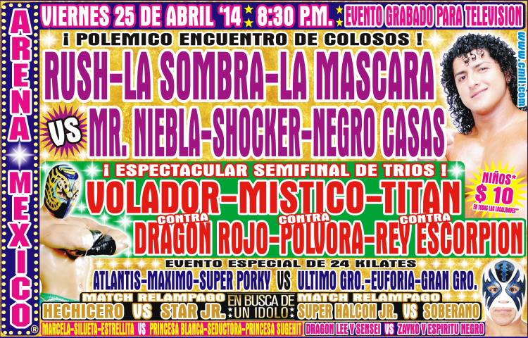 Volador Jr, Místico II y Titán vencieron a Dragón Rojo Jr., Pólvora y Rey Escorpión. Después del combate aparecen Rush, La Sombra y La Máscara que golpean a los ganadores del combate hasta llevarlos entre bastidores.