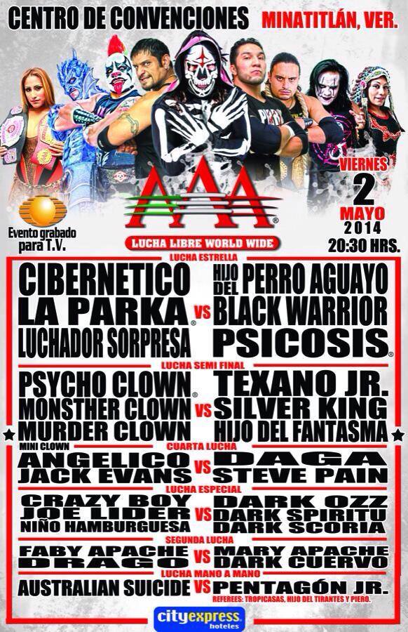 Estos son los resultados de la función de Triple AAA celebrada este viernes 2 de mayo en el Centro de Convenciones de Minatitlan, Veracruz.