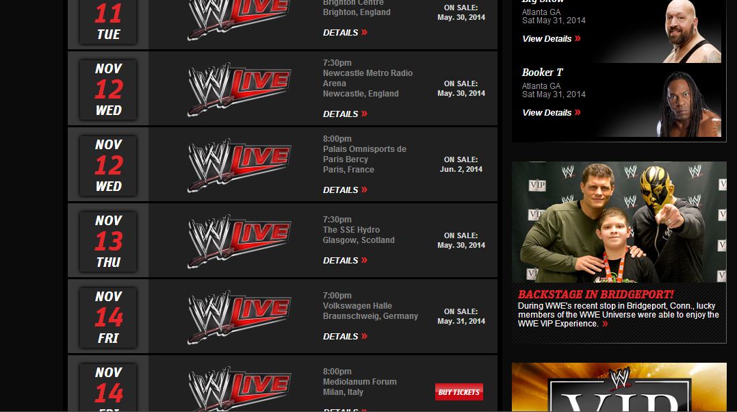 Durante el día de hoy han sido los numerosos mensajes que nos han llegado a través de las redes sociales y del mail directo preguntándonos por el tema de si WWE viene o no viene a Madrid a raíz que en varias webs de información han dicho que definitivamente WWE si viene a Madrid el 13 de Noviembre y que su salida del listado oficial de wwe.com se ha debido a un error.