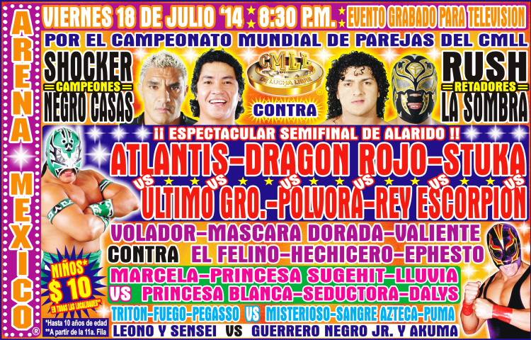- Lucha Estelar por el campeonato mundial de parejas versión CMLL: Negro Casas & Shocker retuvieron ante Rush & La Sombra.