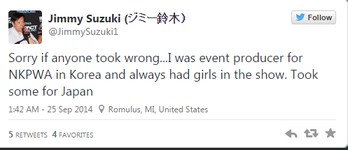 » Perdón si alguién lo malinterpretó … fui productor de eventos de la NKPWA en Korea y siempre tuve chicas en los shows. A algunas las traje desde Japón.»