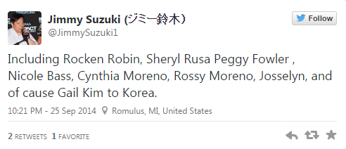 Incluí a Rocken Robin, Sheryl Rusa Peggy Fowler, Nicole Bass, Cynthia Moreno, Rossy Moreno, Josse y Gail Kim en Korea».