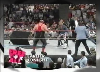De inmediato viene la siguiente lucha que cuenta con el flamante KOTR, Stone Cold Steve Austin, mostrándonos un golpe en la cara que accidentalmente recibe Austin en la semifinal del torneo ante Marc Mero.