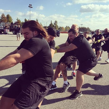 Varios hombres grandes de la WWE NXT y entrenadores, entre ellos Billy Gunn y Bill DeMott, se han reunido en el Aeropuerto Internacional de Orlando esta mañana para tirar de un avión de 50 toneladas para la caridad.