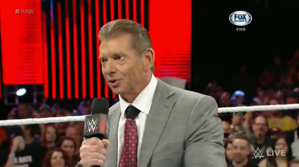 Suena ahora la música de Vince McMahon que llega acompañado de su hija Stephanie y de su yerno Triple H. Pregunta a ver si lo extrañaron y dice que todo ha estado bien desde que se fue. Pide un aplauso para La Autoridad y dice que parece que no los aprecian mucho al oír al público abuchear. Dice que se suscriban al WWE Network y recuerda que durante todo el mes de Noviembre es gratis, lo que significa que el segundo PPVcon más vida de WWE Survivor Series es gratis. Dice que por un lado tendremos al equipo de la autoridad y por otro al equipo de John Cena en un combate tradicional Survivor Series.