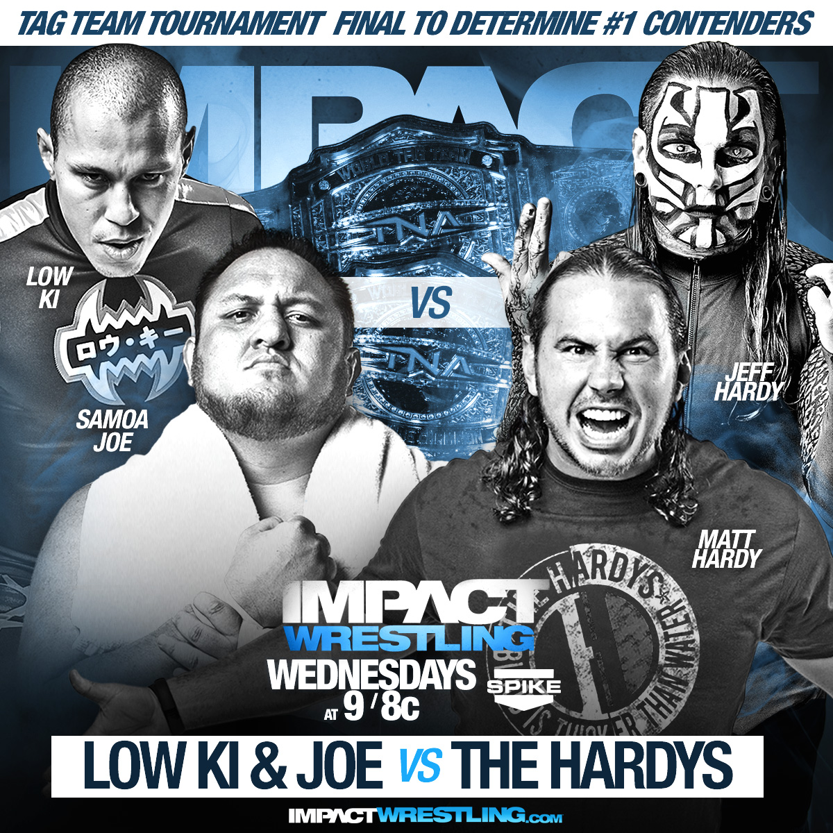 - Ocho equipos empezaron en este torneo por proclamarse number 1 contender al título de parejas, hoy en Impact se disputará la final de este torneo serán los Hardys los que se enfrenten a The Wolves o serán Samoa Joe & Low Ki los que tengan la oportunidad por los títulos.