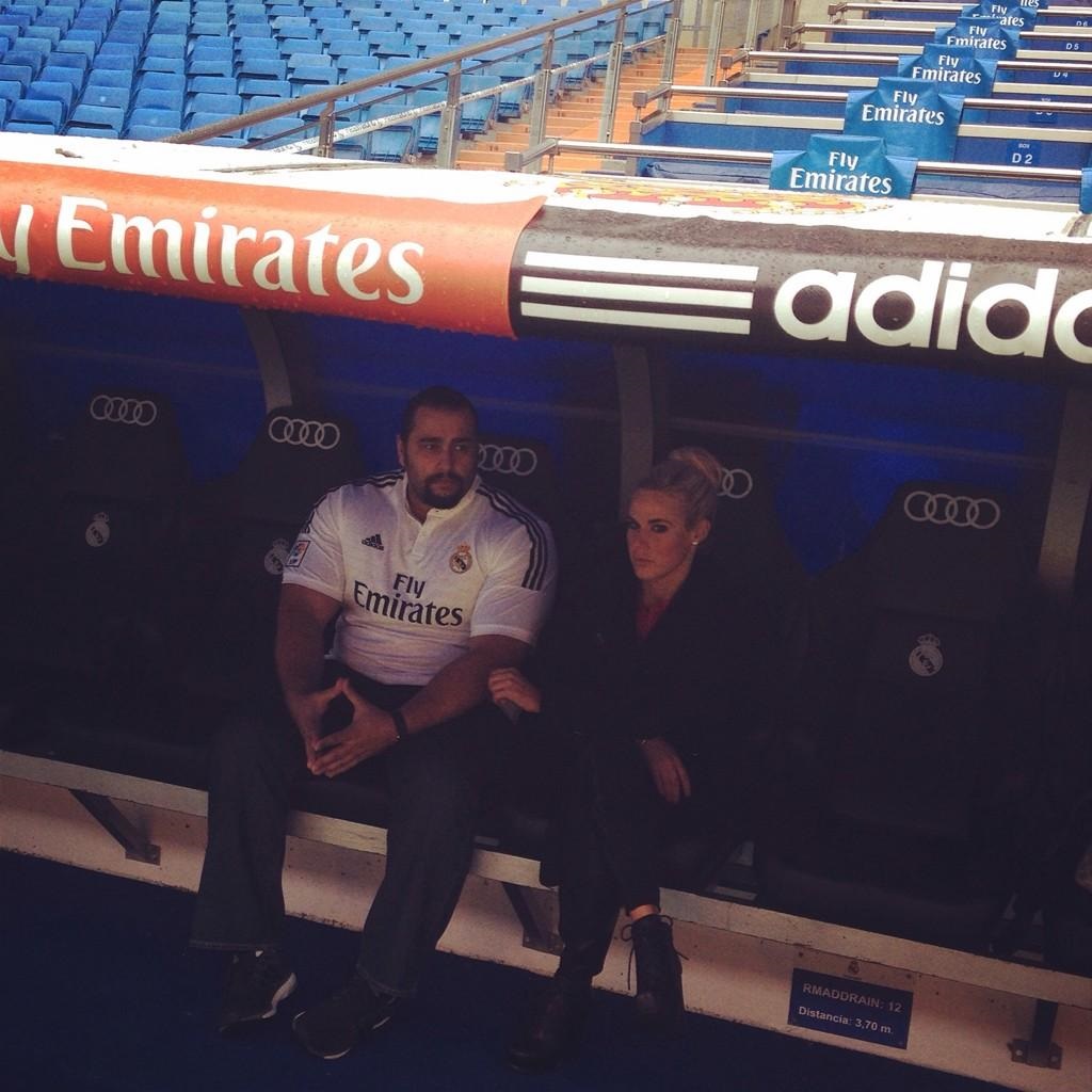 Lana ha compartido en su cuenta de twitter la imagen con Rusev sentados en los banquillos del estadio Santiago Bernabeú, donde juega sus partidos como local el Real Madrid.
