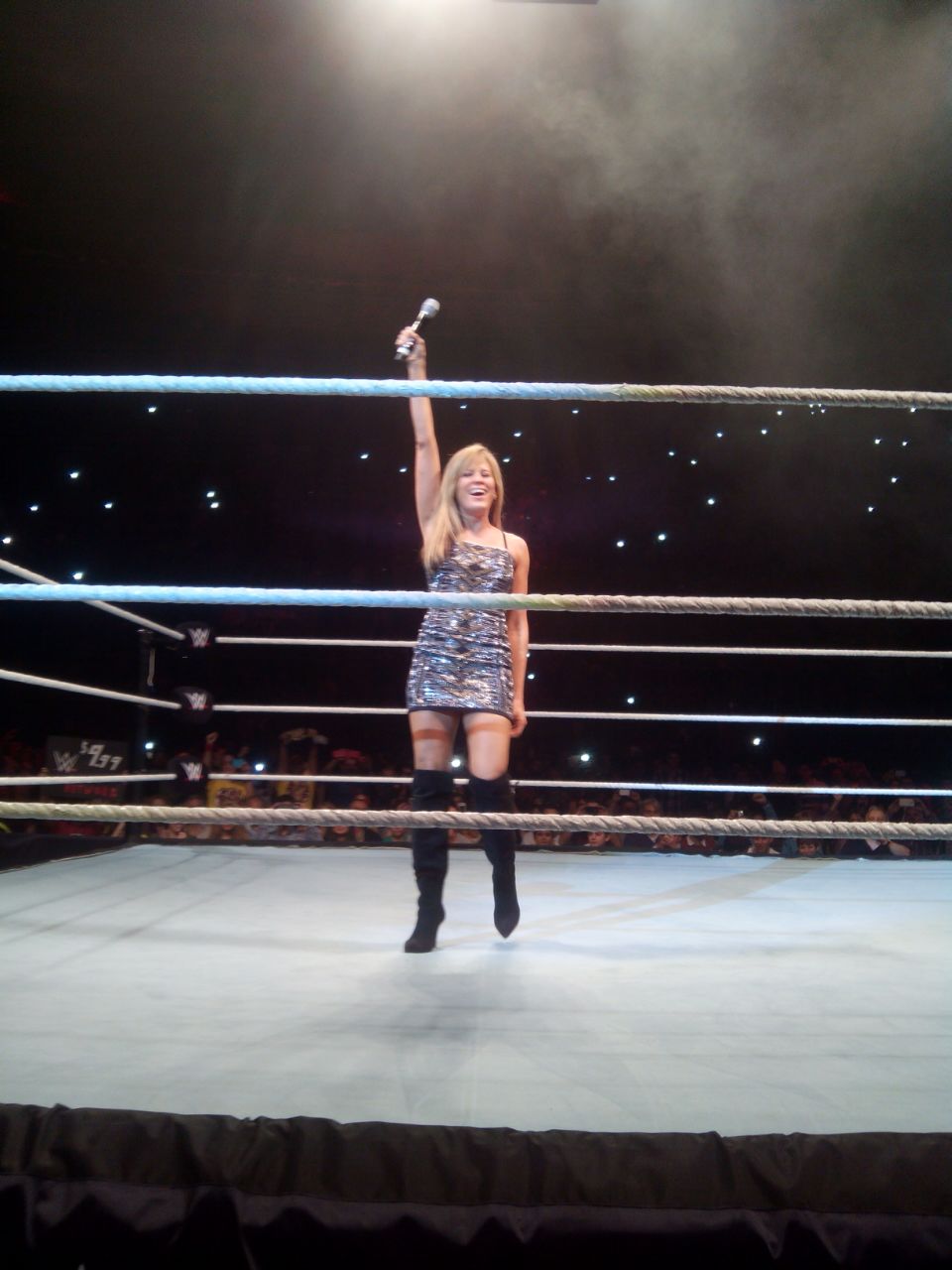 Con media hora de retraso respecto a lo programado, la speaker Lilian García accede al cuadrilátero, pidiendo paciencia al público que espera ansioso el comienzo del show. Para ir calentando el ambiente, y aprovechando sus orígenes españoles, canta la canción «Qué viva España» con un estadio totalmente entregado que hacía los coros y el acompañamiento.