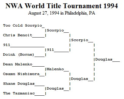 Los participantes de dicho torneo fueron: Shane Douglas, Tazmaniac, Dean Malenko, Osamu Nishimura, 2 Cold Scorpio, Chris Benoit, 911 y Doink, siendo los finalistas 2 Cold Scorpio y Douglas, quien como sabemos resultó ser el vencedor, sin embargo, ante sorpresa de todos, «The Franchise» rechaza el campeonato, asegurando tras la premiación que no continuará con el legado de un campeonato que murió 7 años antes (en referencia a cuando Ted Turner compra el territorio de Jim Crockett), lanza el campeonato, toma el de la ECW y lo señala como el futuro del wrestling.