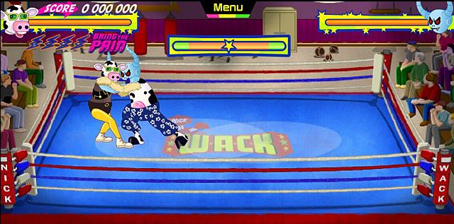 En este juego tendrás que formar tu propio luchador mezclando partes de la Banana Atómica, Bling, y Pepita Problemas. Entra al ring, y desata movimientos especiales en contra de tu oponente. ¡Trabaja el cierre, y ábrete camino al estrellato de la lucha!. Un juego bastante divertido e intuitivo que te hará descubrir como puede ganar un combate una banana o una vaca. wack wrestling challenge