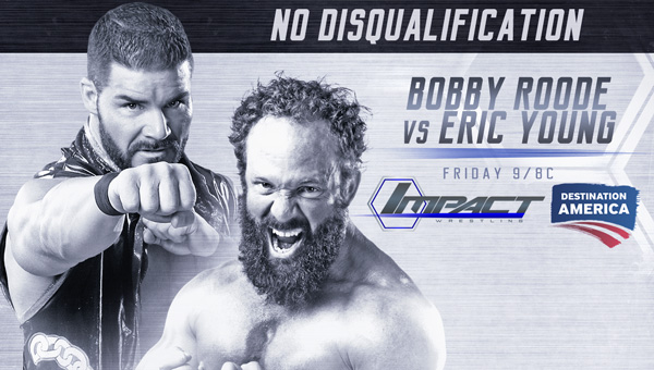 - La semana pasada el mundo de TNA se quedó de piedra al ver a Eric Young traicionar a su amigo Bobby Roode y costarle asi el título de los pesos pesados. Bobby Roode retó a un combate no DQ esta noche y los oficiales de Impact lo han aceptado. Asi esta noche Eric Young se verá las caras contra Bobby Roode en un NO DQ macth.