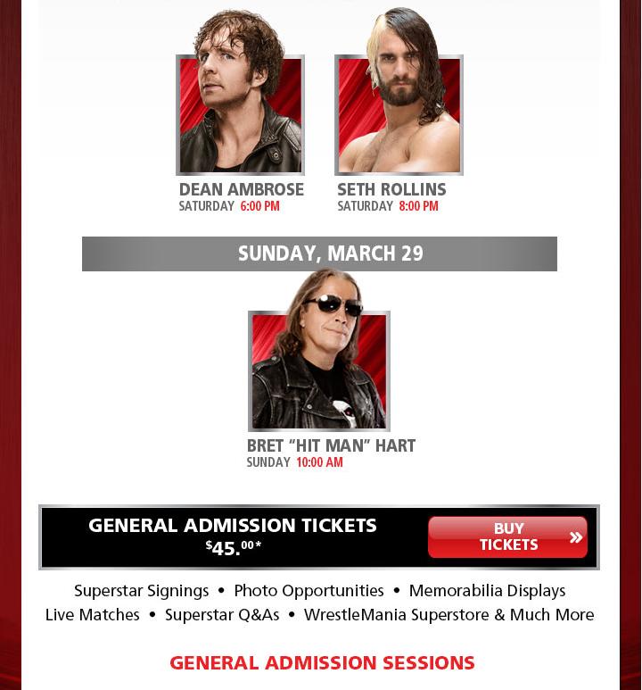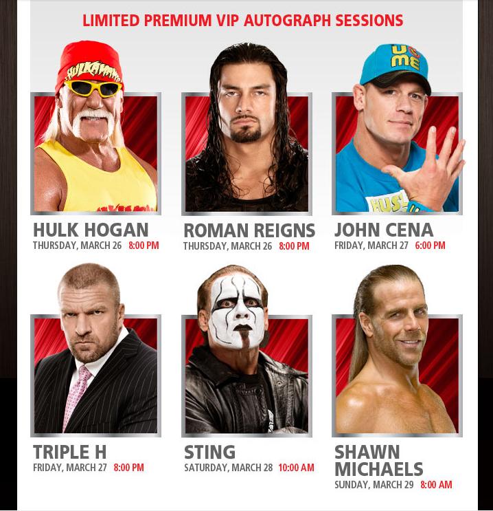 Desde hoy a las 09’00 am (hora local) están a la venta las entradas en preventa para el evento Wrestlemania 31 Axxess en el San José Convention Center, para los días 26, 27, 28 y 29 de Marzo en http://www.ticketmaster.com con el código «Axxess». A continuación os dejamos toda la info en imágenes.